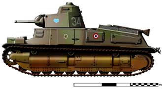 чел. – водитель, радист, командир-наводчик; вооружение – 47-мм пушка SA35, 7,5-мм пулемет MAC-31; двигатель