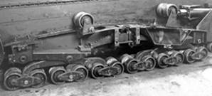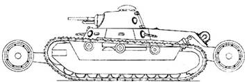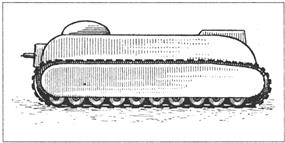 Сверхлегкий танк Cunningham T-1 выглядел, как бронеавтомобиль на гусеницах за счет своей чрезвычайно оригинальной ходовой. Вместо многокатковой ходовой (Рис.380) американские инженеры применили ходовую часть с четырьмя опорными катками большого диаметра.