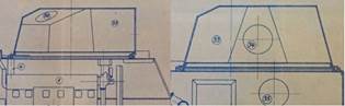 Экипаж танка-тягача состоял из водителя, сидящего с правой стороны, и наводчика с левой стороны, причем оба они будут наклонены вперед. Головы двух членов экипажа должны были защищать броневые надстройки в форме усеченных пирамид. (Рис.388)