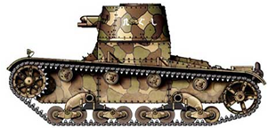 Vickers Medium Tank Mk.II//Mk.II* (15) Vickers Medium Tank Mk II CS (3) Vickers Medium C//Vickers Medium D (1) Vickers Wheel-Cum-Track Tank Mk.I//Vickers Wheel-Cum-Track Tank Mk.Iа (1)° |