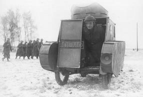 Судя по фото, процесс производства LK II выглядел следующим образом. Из Германии прибывали бронелисты и элементы тракторной/танковой ходовой (гусеницы, ролики и т.п.), которые устанавливались на шасси автомобилей Daimler, которые, кстати, можно было приобретать в Германии вполне легально. Таким способом в 1922г. были собраны 10 машин, получивших имя Stridsvagn m/21. (Рис.7)