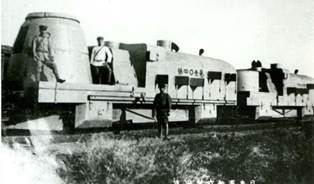 Рис.12 – Бронепоезд и мотоброневагон «Орлик» в Манчжурии.