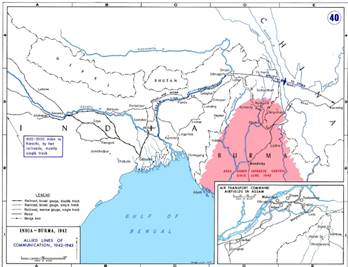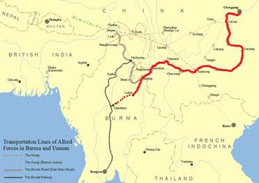 С 16 декабря 1942г. под руководством генерала Стилвелла начали строить дорогу от индийского штата Ассам до Бирманской дороги через перевал Пансау, лежащий на высоте 1136 м на границы Индии и Бирмы. Дорога получила название Ледо или дорога Стилвелла. (Рис.185)