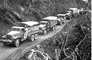 Из-за высокой важности проекта командование США направило на сооружение дороги 15 тыс. человек. При строительстве было извлечено 10 327 500 м³ земли, и построены переправы через 10 крупных и 155 мелких рек. Стоимость постройки дороги оценивается в $148 млн. Дорога строилась до 20 мая 1945 года, её длина составила 436 км. До окончания войны по ней было перевезено 35 тыс. т военных грузов. (Рис.186)