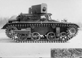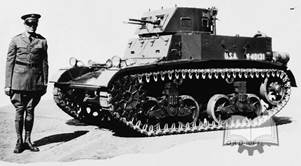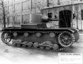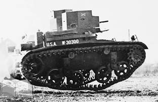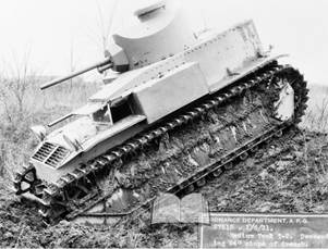 В 1931г. в США был доставлен демонстрационный образец британского легкого танка Vickers Mk E, после знакомства с его конструкцией, американцы вернули машину на родину.