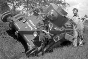 Рис.277 – Rhino – машина разработана Элли Ахнидсом, не валилась на борт при угле наклона 75 градусов, могла двигаться по воде, используя водомет. Масса машины 4 т. Разгонялась 110-сильным фордовским двигателем до 70 км/ч.