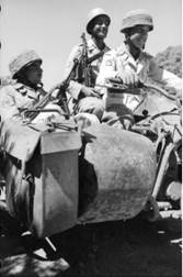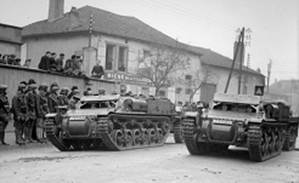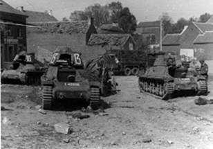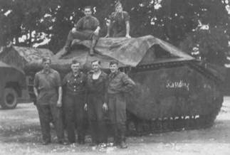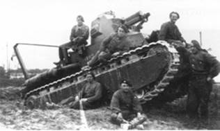Рис.542 - Французские танкисты с британскими танками. Знатоки считают, что ромбическая маркировка (на танках британская маркировка) указывает, что передняя - это машина штабной роты. Некоторые без обиняков пишут, что эти танки ранее принадлежали 5 RTR (5-му королевскому танковому полку).