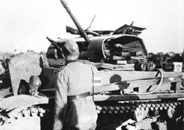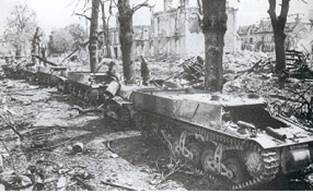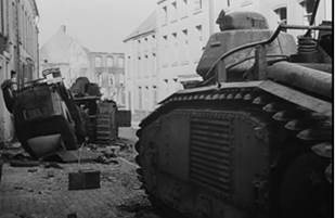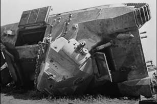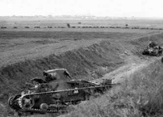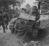 Никакой достоверной подробной информации по применению британских машин французами нет. Можно сопоставить лишь некоторые факты. 19 мая пал Брест. Встречается несколько фотографий брошенного на дороге в полной комплектации танка №T5914 (нумерация и окраска по-прежнему британские), который, как считают, находился во французской эксплуатации. (Рис.543)