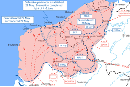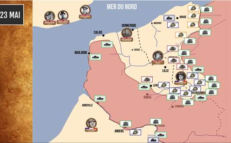 В литературе встречается альтернативная точка зрения – мол, 10 крейсерских танков 5-го королевского танкового полка передали французской 342-й отдельной танковой роте, эти танки приняли участие в обороне Кале. Однако танки 5-го КТП не могли оказаться в Кале физически – в Кале, во внутреннем кольце окружения союзных войск в Бельгии и Северной Франции разгружался 3-й королевский танковый полк, а 5-й действовал за внешним кольцом окружения. Кале пал 27 мая, когда 342еCACC находилась еще в Норвегии. Правда, косвенно в пользу версии того, что французы могли использовать британские танки при обороне Кале, служит замечание, что в Кале по состоянию на 25 мая из состава 3-го королевского танкового полка в боеготовом состоянии находилось три крейсерских машины (на известной фотографии мы видим как раз три танка). Не исключено, что британцы могли передать их французам, а сами эвакуировались. Как говорилось выше, 27 мая Кале пал. При таком раскладе очевидно, что танки не передавались в состав французской 342еCACC.