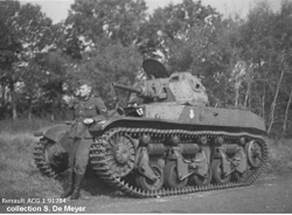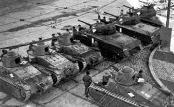 Renault R-35 (450) АМС 35 Renault ACG1 (40) Hotchkiss H-38/Н-39 (80) AMR 35 Renault ZT2 (5) AMR 35 Renault ZT3 (10) Renault-AMX R-40 Hotchkiss Н-40 |