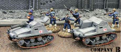 Type 92 Jyu-Sokosha (41) Type 92 A-I-Go (1) Suiriku-Ryoyo II (1) Type 95 Ha-Go (4) Suiriku-Ryoyo III Type 97 Chi-Ni |